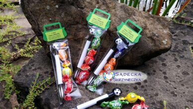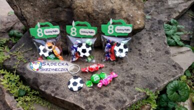 Pakiecik zawiera trzy cukierki oraz silikonowy breloczek (wzór jednostronny)Średnica piłki 3,7 cm.Zestaw słodyczy przykładowy.Kraj pochodzenia breloczków: Chiny Po zmianie tekstu na winietce z