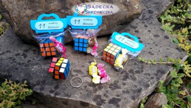 W skład pakieciku wchodzą dwa cukierki oraz breloczek. Kostka o boku 3 cm.Kraj pochodzenia breloczków: Chiny.Cukierki polskiego producenta. Zestaw przykładowy.Personalizacja pakiecików w cenie.