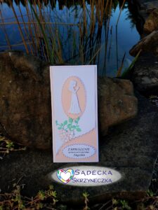 Wymiary 10 na 21 cm. W komplecie z białą kopertą DL.