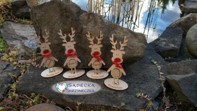 Świąteczne reniferki Sympatyczne reniferki polecają się na świąteczne prezenty, dekoracje świątecznego stołu czy dodatek do mikołajkowych niespodzianek. Wykonane z surowej sklejki 3 mm.