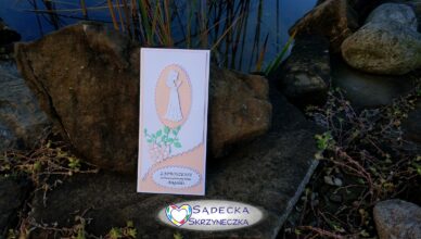Zaproszenie komunijne (K33) dla Chrzestnych lub specjalnych gości Wymiary: 10,5 x 15 cm. Całość w pudełeczku przewiązanym wstążeczką. Różne kolory papierowych kwiatuszków. Dostępne