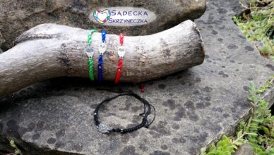 Bransoletka z łącznikiem w kształcie sowy, wykonana ze sznurka 1 mm.Regulowana w obwodzie.Długość splotu wraz z łącznikiem ok. 12 cm. Łącznik o wymiarach