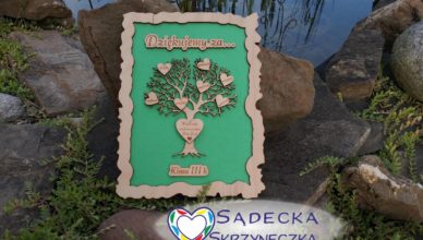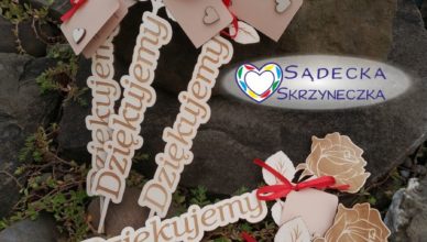 Róża ze sklejki z napisem DZIĘKUJEMY. Doskonała, by podziękować pedagogom od całej klasy. Pozostanie świeża przez długi czas i nie pozwoli zapomnieć o