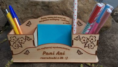 Personalizowany organizer dla nauczyciela pozwoli zachować przybory na biurku w należytym porządku a uczniów w sercu Wykonany z surowej sklejki 3 mm. Dowolna