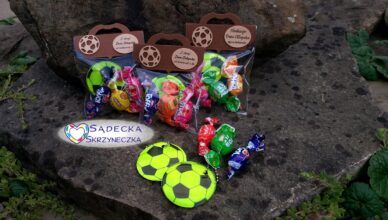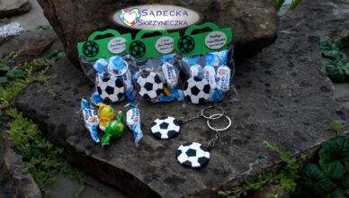 Pakiecik zawiera trzy cukierki oraz odblaskową, dwustronną zawieszkę z motywem piłkiŚrednica zawieszki 5 cm.Zestaw słodyczy przykładowy. Po zmianie tekstu na winietce z powodzeniem