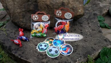 Pakiecik zawiera trzy cukierki oraz trzy naklejki z motywem piłki nożnej – mix wzorów.Średnica naklejek ok. 5 cm.Zestaw słodyczy przykładowy. Po zmianie tekstu